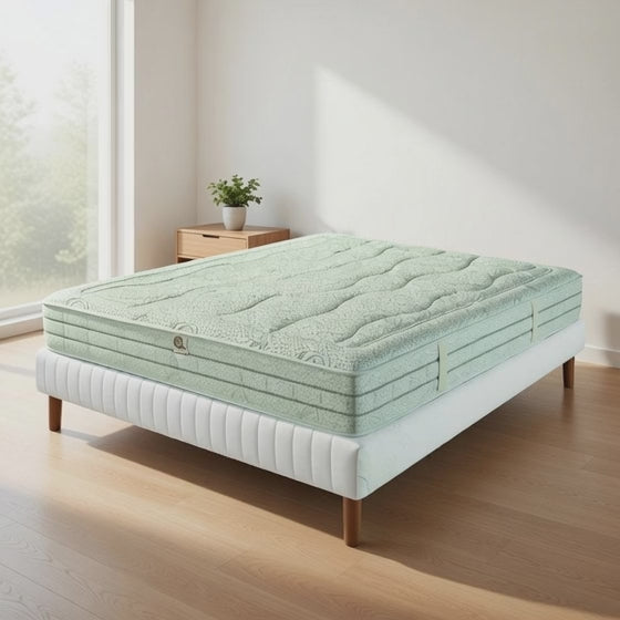 The 5 cm Memory Aloe layer offers an ergonomic and progressive welcome, improving comfort without reducing the rigid support of the structure.