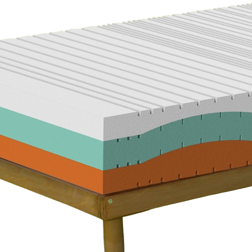 Materasso automodellante in Memory Foam su base Water Foam senza CFC, ecologico e anallergico. Crea un ottimo bilanciamento fra il giusto sostegno ortopedico ed il comfort anatomico.